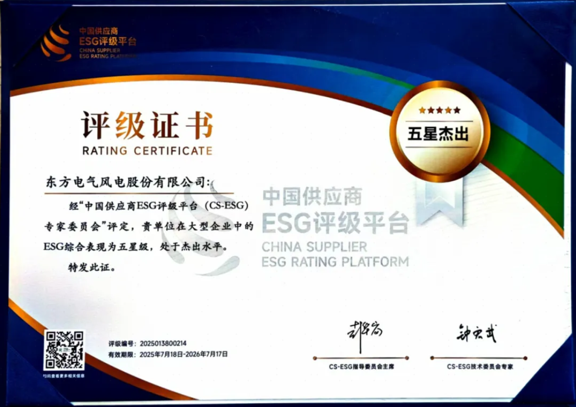 基于首次評級成果與提升建議,后續東方風電將進一步強化ESG管理工作策劃,在可持續供應鏈建設與ESG披露等領域補齊短板,搭建東方風電ESG治理體系,持續在環境、社會和公司治理等方面發揮央企的責任擔當。