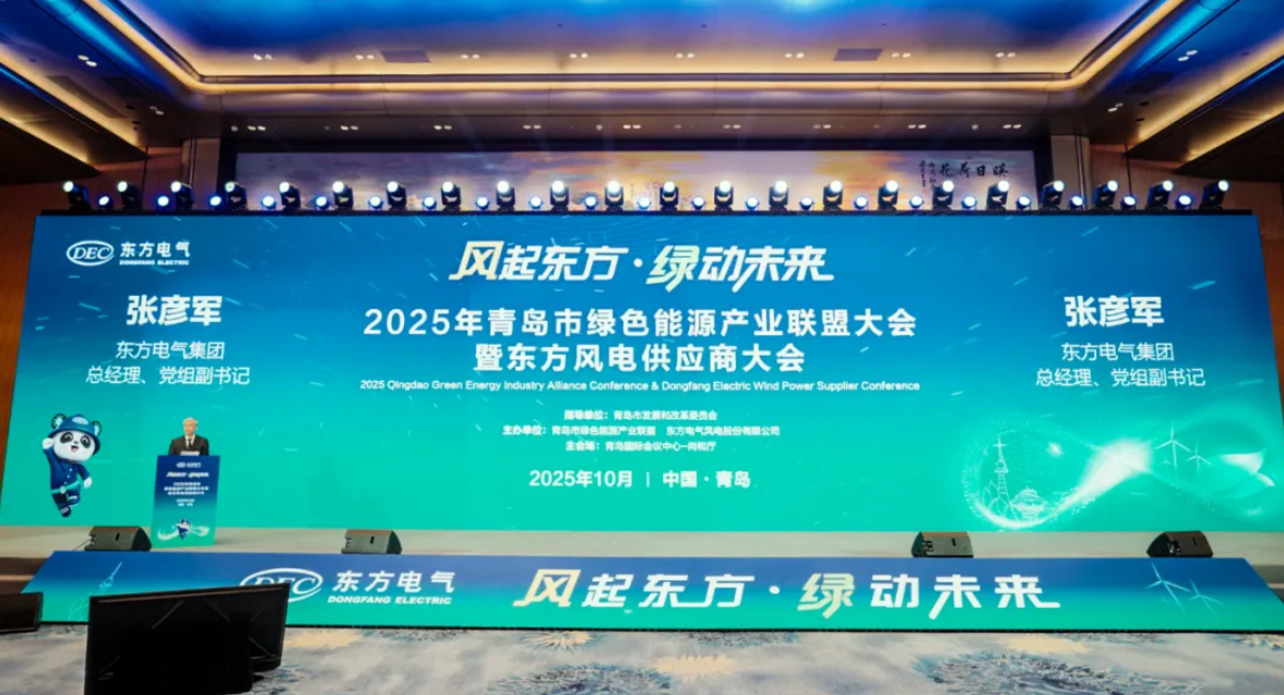 10月15日,2025年青島市綠色能源產業聯盟大會暨東方風電供應商大會在青島舉行。東方電氣集團總經理、黨組副書記張彥軍出席活動并致辭,集團公司黨組成員、副總經理李建華,青島市政府副市長、青島市綠色能源產業專班牽頭市領導解宏勁出席活動。